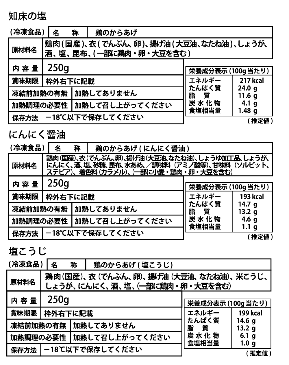 ¥4,900 (税込) 知床からあげ もも レンチンセット【知床の塩、にんにく醤油、塩こうじ】各250g×1パック=750gーーーーー知床の恵みの詰まった一品です。ーーーーー商品一括表示(タッチすると拡大できます)在庫切れ カテゴリー: レンチンタイプ 商品詳細 商品詳細知床からあげについて関連商品 知床からあげ むね レンチンセット【知床の塩、にんにく醤油、塩こうじ】 各250g×1パック=750g ¥4,000 (税込) 続きを読む 鶏のからあげ もも レンチンセット【鶏のからあげ】 300g×3パック=900g ¥4,000 (税込) お買い物カゴに追加