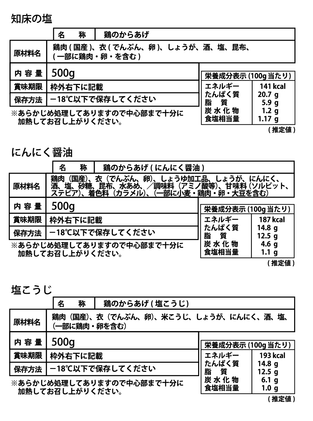 ¥5,800 (税込)知床からあげ もも 生タイプセット【知床の塩、にんにく醤油、塩こうじ】 各500g×1パック=1.5kgーーーーー商品一括表示(タッチすると拡大できます)在庫切れ カテゴリー: 生タイプ関連商品 知床からあげ むね 生タイプセット【知床の塩、にんにく醤油、塩こうじ】 各500g×1パック=1.5kg ¥4,900 (税込) 続きを読む 鶏のからあげ もも生タイプセット【鶏のからあげ】 500g×3パック=1.5kg ¥4,000 (税込) お買い物カゴに追加